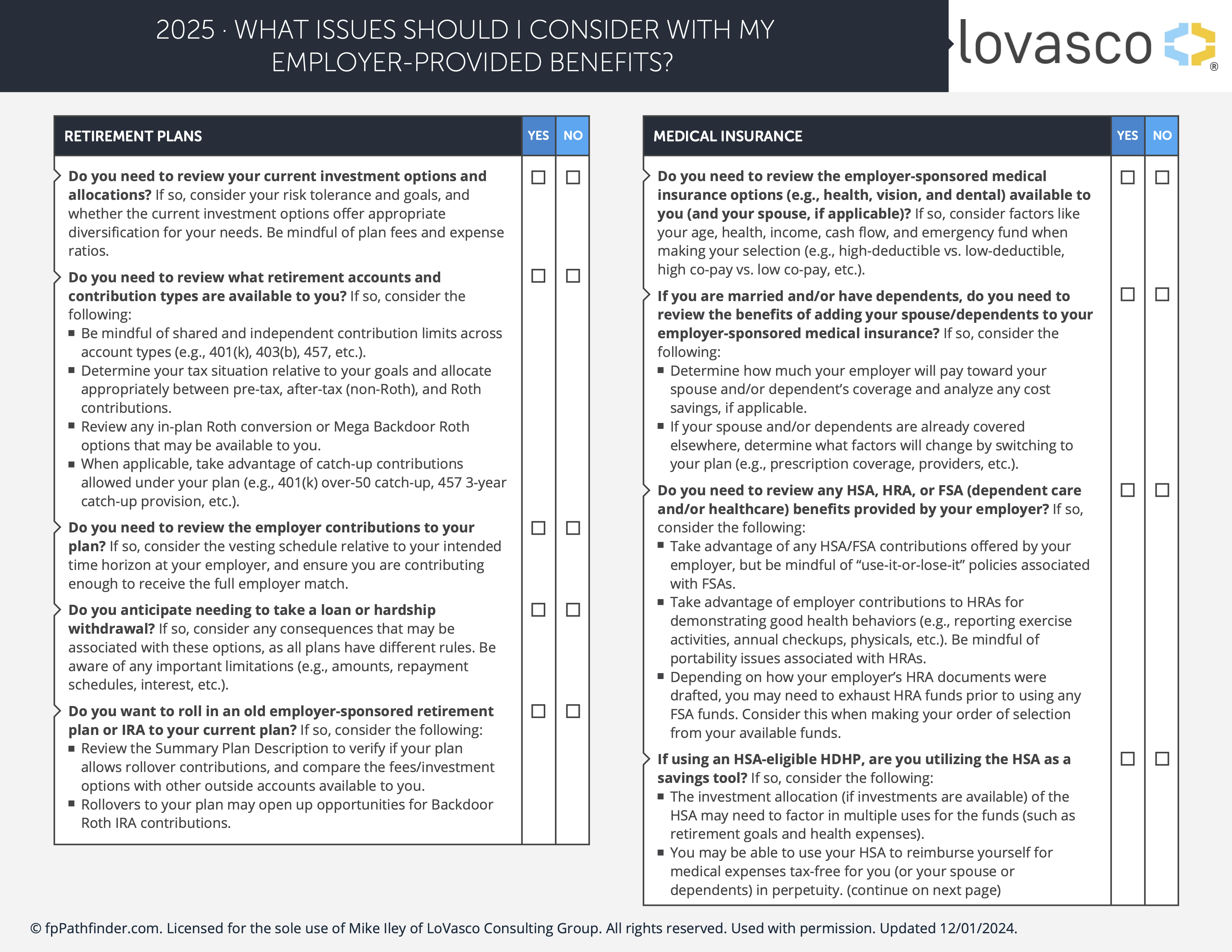 The helpful checklist, “What Issues Should I Consider With My Employer-Provided Benefits?”, is designed to help you evaluate your options and make informed decisions that align with your goals.